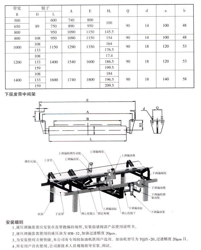 3、液壓調(diào)偏裝置根據(jù)皮帶機(jī)的膠帶有上下兩種,分為上皮帶調(diào)偏裝置和下皮帶調(diào)偏裝置兩類。